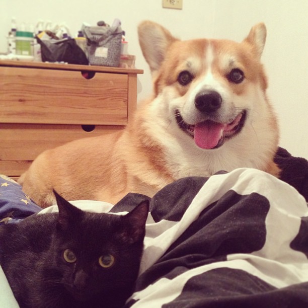 Na nova casa, eles têm um amigo canino.