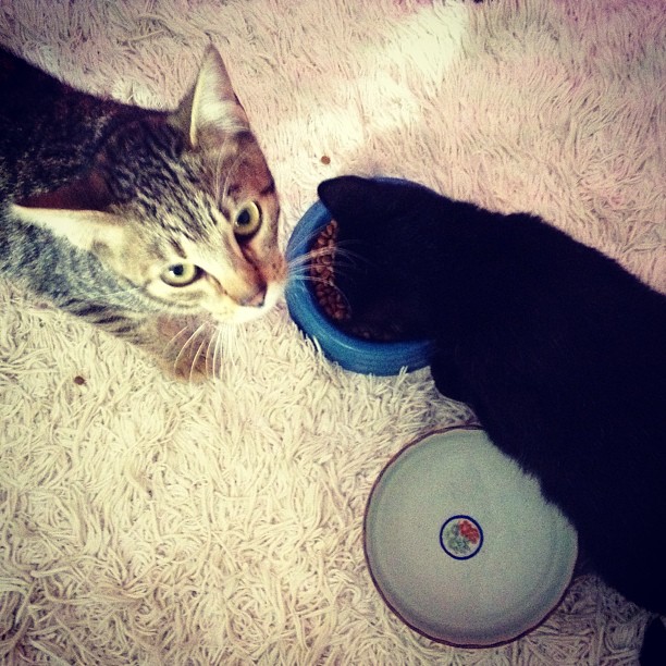 Na mesma casa da tia estava o Tinoco. Quando a rajadinha sarou, saiu do banheirinho e foi para onde estava o Tinoco. Eles ficaram amigos, mas não esperávamos que fossem adotados juntos. Mas foi o que aconteceu, pra nossa imensa felicidade! A rajada se assusta com falicidade ainda, com qualquer barulhinho estranho. Então, nada como um amiguinho pra fazê-la ganhar confiança rapidinho.